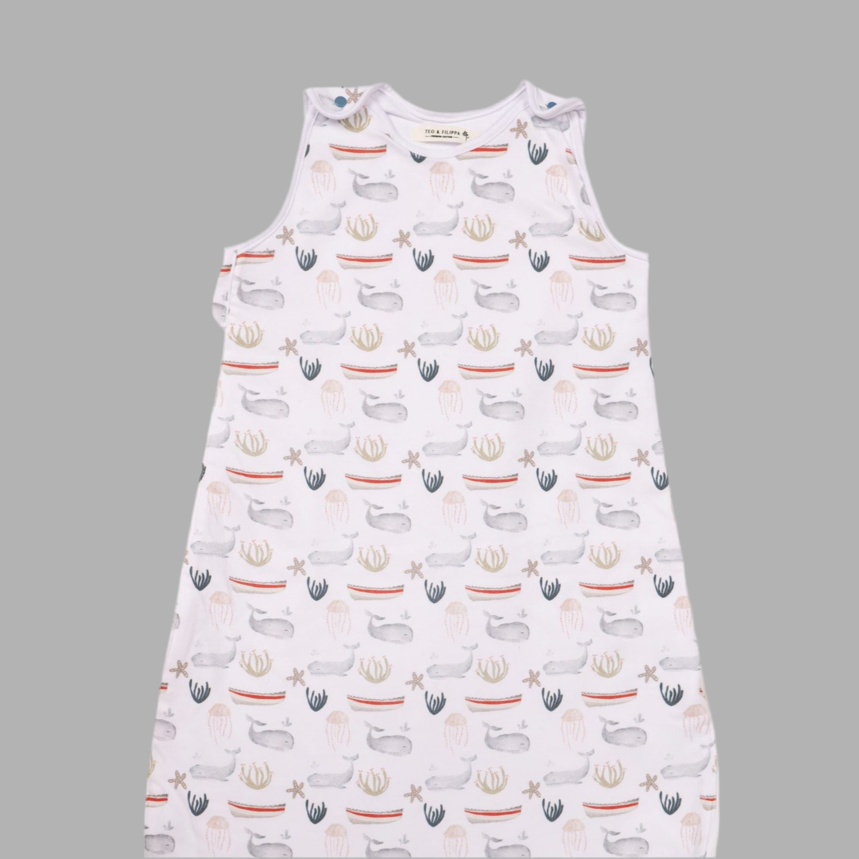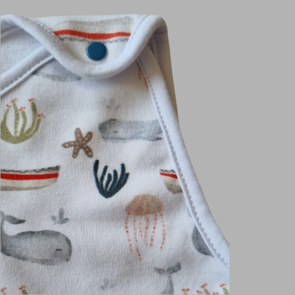 Diseñado con broches en la parte superior para ponerlo fácilmente y un cierre completo en la parte inferior, que permite mudarlos sin necesidad de desabrigarlos.