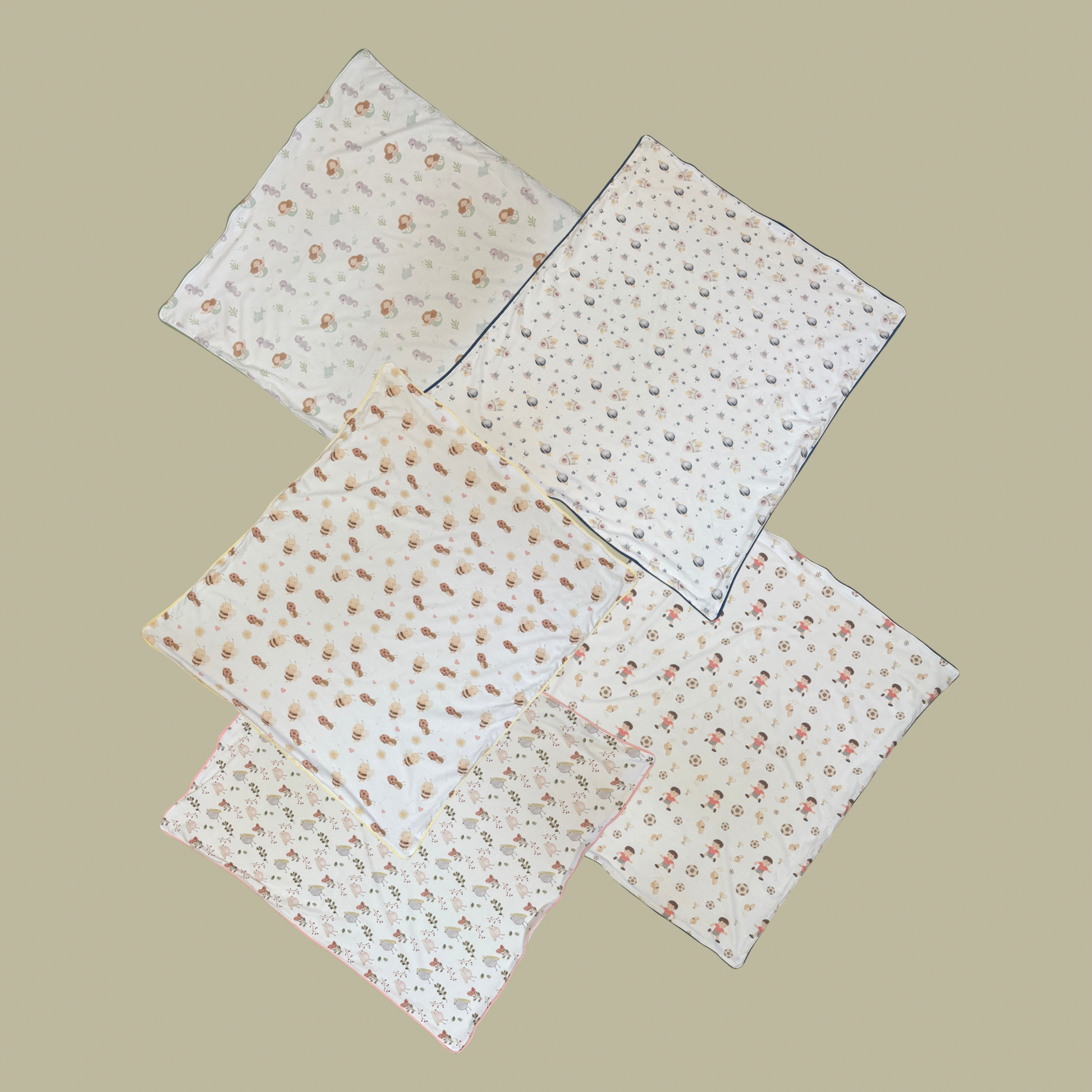 • Diseño: Doble faz (Estampado Teo y Filippa + Reverso blanco liso).